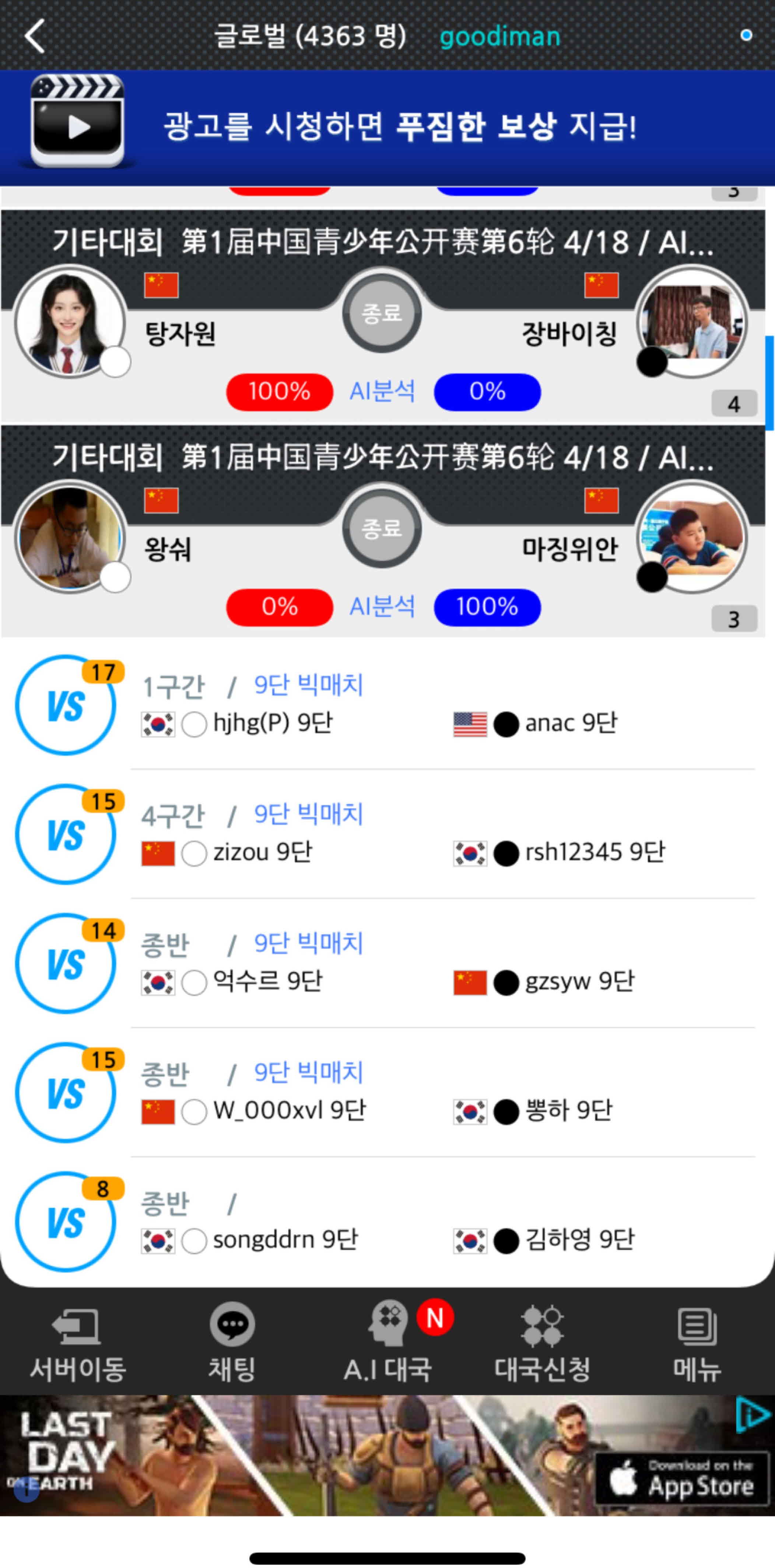 기력에 맞춘 다양한 상대를 만날 수 있어서 남녀노소 누구나 쉽게 대국을 즐길 수 있습니다.
